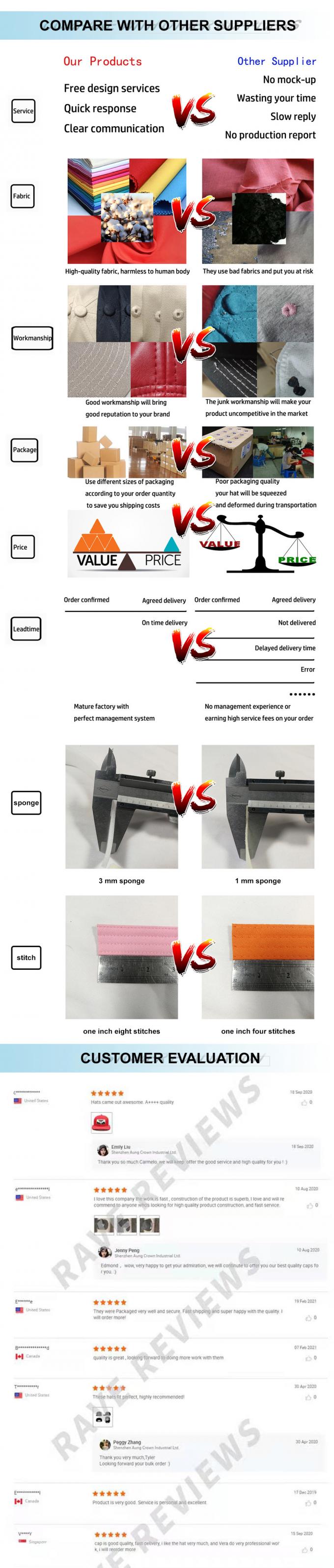 A: The caps will be passed to the finishing section where the loose sewing threads will be cut off and the quality control staff will inspect the finishing productions,Upon completion, the caps will be shaped then packed with poly bag and cartons